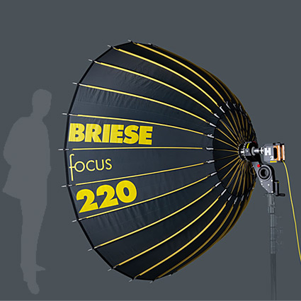 focus 180 The focus 180 makes the Briese-principle obvious. Fully focused it creates dramatic lighting with multiple screen differences between the centre and the edge of the picture. Almost like day and night. Perfect for strong accentuations. With just one setup you can create various lighting moods. Those characteristics make the focus be a main character at many Fashion-Productions.