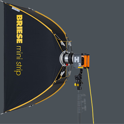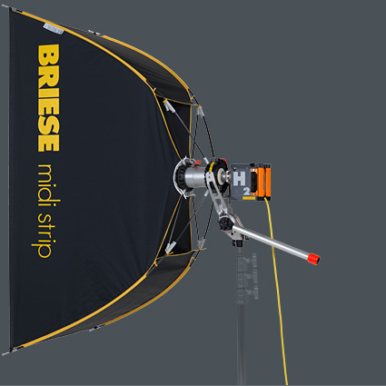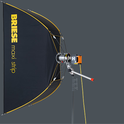 Briese offers this sort of reflector in three different sizes for daylight and hotlight. You can choose between two diffisers with different density and a neutral gray- reduction diffuser ( minus 1f- stop ). The 60x130 Strip forms a medium band of light with which you are able to make excellent side- or skylights.